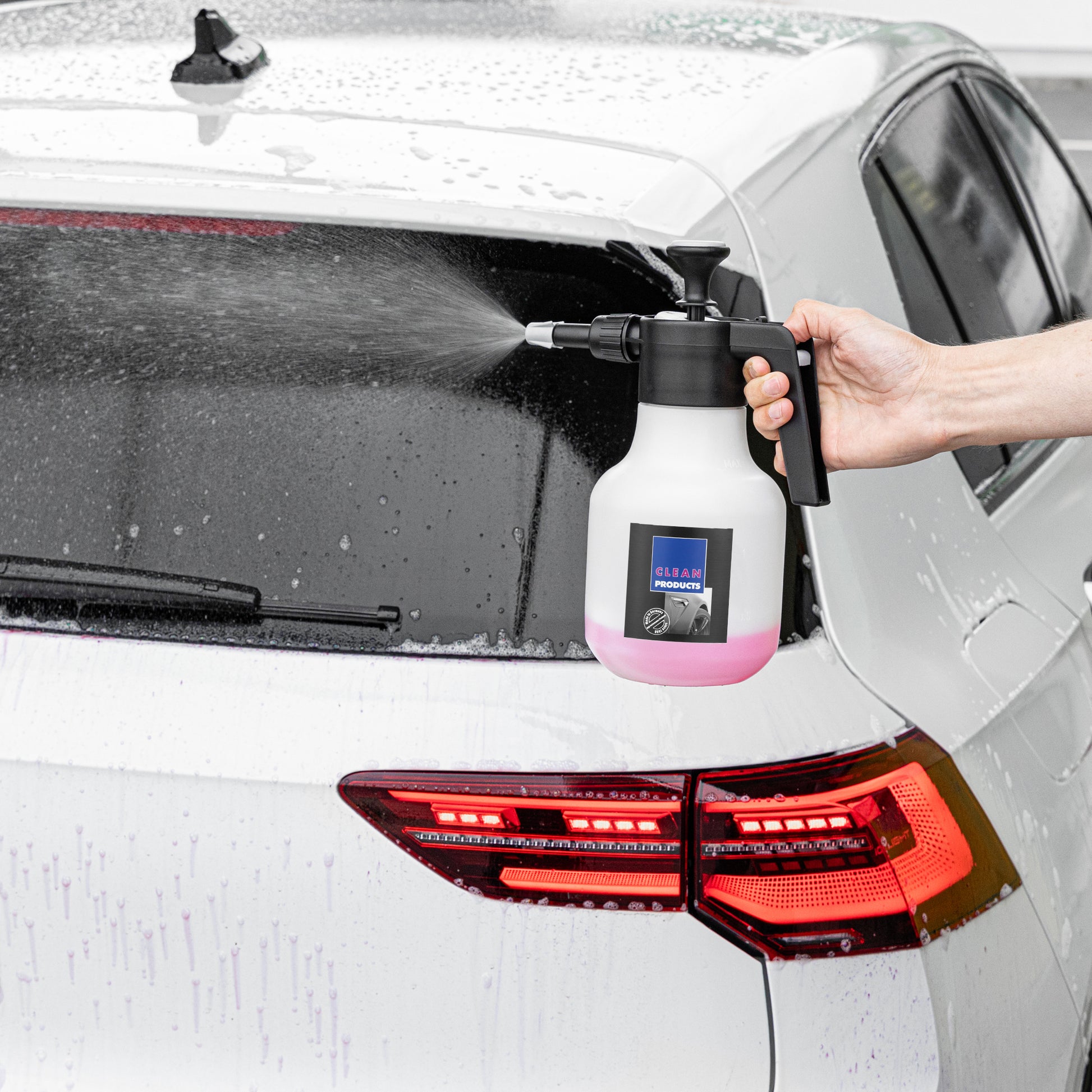 Das Profiwerkzeug für das perfekte Einsprühen von größeren Oberflächen bei der Außen- und Innen-Reinigung bei der Fahrzeugreinigung und Fahrzeugpflege. Pumpsprühflasche mit bis zu 1,5 Liter Füllvolumen. Qualitativ sehr gut verarbeitet. Mit hochwertigen Materialien: verstellbare Düse, stabile Pumpe und Kunststoff-Flasche.